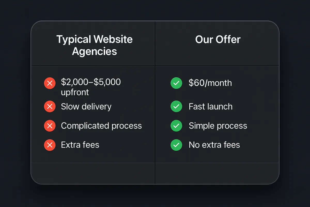 Get a clean, professional website for just $60/month — with hosting and launch included.